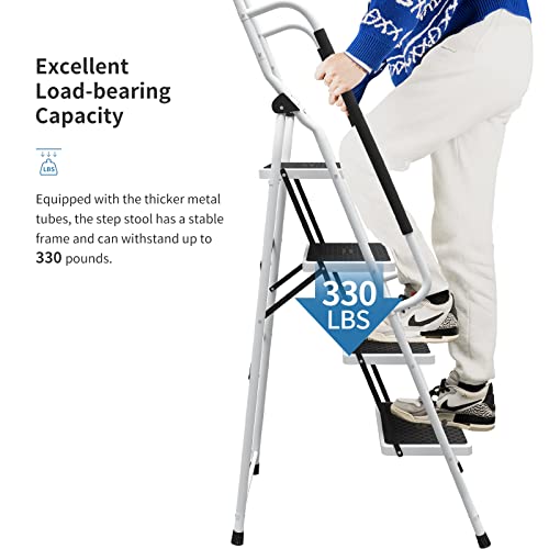 DAWNYIELD Scaletta a 4 Gradini in Acciaio Pieghevole Antiscivolo con Corrimano di Sicurezza Sgabelli per Impieghi Gravosi per Adulti Casa Cucina all'aperto - Scala a 4 Gradini