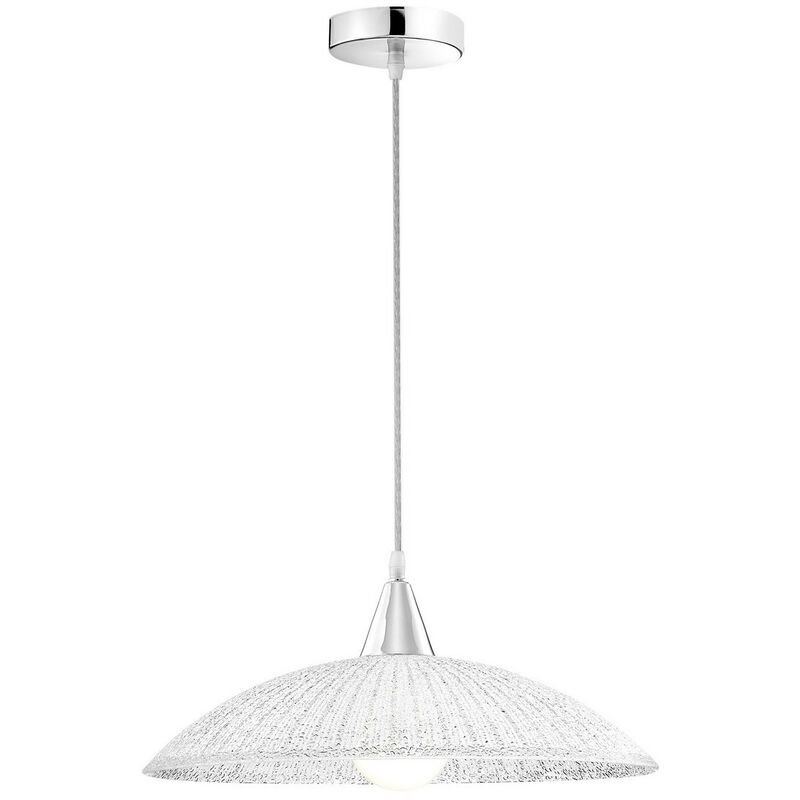 Merano Dawson Cupola Sospensione Plafoniera Metallo Cromo Bianco, Vetro Strutturato Trasparente LED E27att | Finitura: bianco, trasparente | Materiale: vetro, metallo | Classificazione IP: IP20 | Altezza: 100 cm | Lunghezza: 40 cm | Larghezza: 0 cm | Tipo di lampada: E27 | N. di lampade: 1 | Lampadina inclusa: No | Dimmerabile: No | Peso: 1,2kg | Potenza (massima): 1x60W