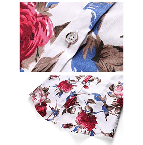 Dawwoti Men Casual Shirt A Maniche Lunghe Fiori Button-Down Tees Hawaiane Formato più