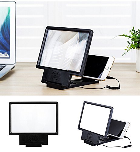 Dax-Hub Screen Amplifier, 3D Telefono Magnifier Screen Movie con supporto del basamento pieghevole e altoparlanti stereo, HD Movie Video Amplificatore - proteggere gli occhi con Telefono pratica staffa Supporto pieghevole basamento per il iPhone, Samsung, Android e altri telefoni intelligenti (con l'altoparlante - nero) (Nero)