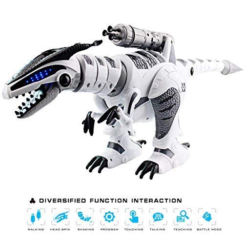 Multifunzionale: questo robot dinosauro è il regalo più popolare dell'anno 2020, diverse funzioni, può camminare, scuotere la testa, scuotere le code, riconoscimento del tocco, parlare, modalità di combattimento, avvio del razzo, musica, danza, rotazione a 360 gradi, scivolo e molto altro ancora.