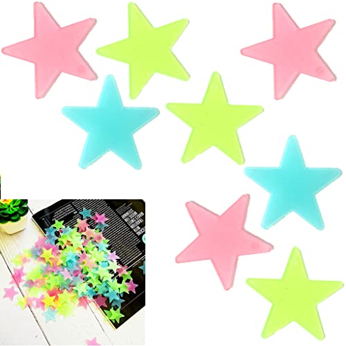 Daxlizy Adesivi Glow Star, 200 Pezzi 3D Glow Star Adesivi da Parete in Plastica Fluorescente, Stelle Luminose che brillano al Buio, Set di Adesivi Murali per la Camera dei Bambini (Multicolore)