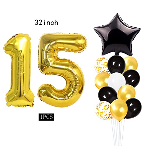 Daxlizy 15° Compleanno Decorazione Ragazzo, Compleanno Decorazione Ragazza 15 Anni, Palloncini Oro Nero Buon Compleanno Ghirlanda Banner, Palloncini Happy Birthday Ghirlanda Palloncino Gigante Foil 15