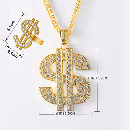Daxlizy Hip Hop Dollaro Collana Anello Oro Uomo Dollaro Collana Collana Placcata Oro Ciondolo Dollaro US Dollaro Ciondolo Collana Collana per Uomini Donna Bambini Rapper Punk, Metallo