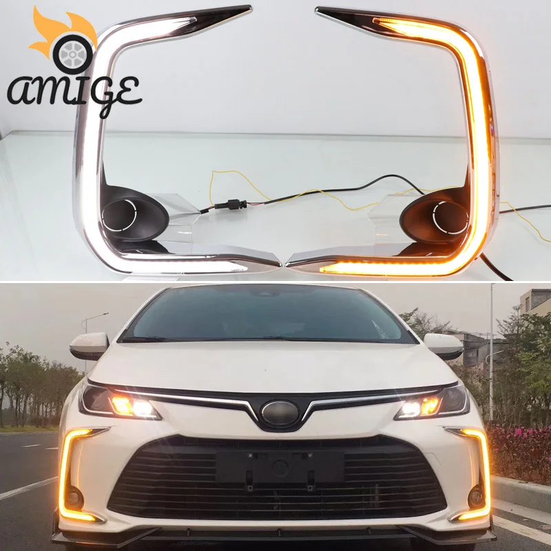 Car LED DRL Daylamps For Toyota Corolla 2019 2020 Yellow Turn Signal Daytime Running Light Foglamp Daylight