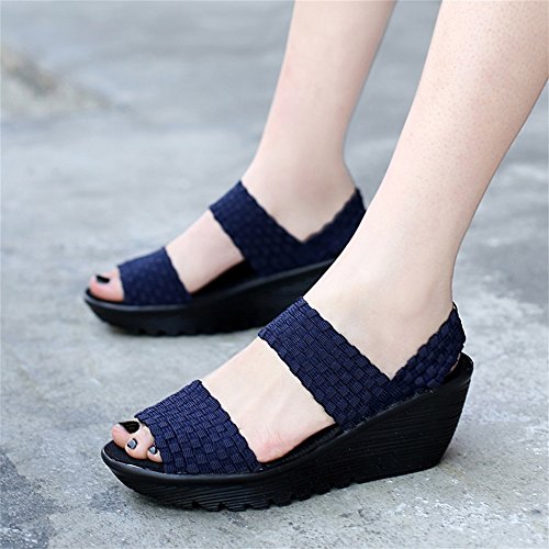 Dayout, sandali estivi da donna in tessuto con zeppa, punta aperta, Mary Jane, (Marina Militare), 39.5 EU