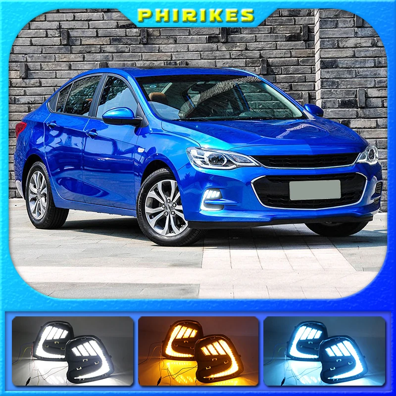 2PCS LED Daytime Running Light For Chevrolet Cavalier 2016 2017 2018 Yellow Turn Signal Function Car DRL 12V LED Fog Lamp