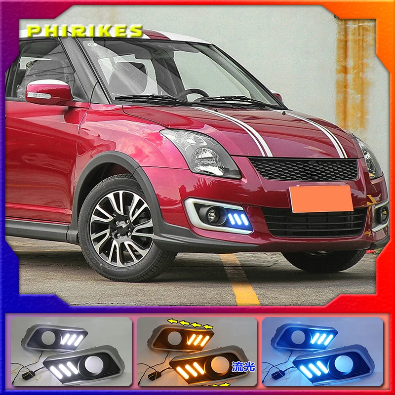 2PCS LED Daytime Running Light Turn Yellow Signal Relay Waterproof Car 12V LED DRL For Suzuki Swift 2013-2016