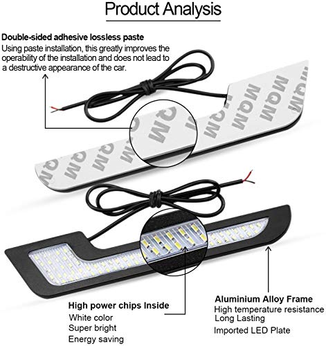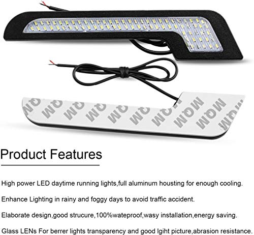 IQQI Daytime Running Lights Luce Bianca A LED L-Shape Strips 72 SMD Lente in Vetro, 12V DRL 7W Lampada Fai da Te LED con Autoadesivo della Parte Posteriore 100% Impermeabile, (2 Pezzi)