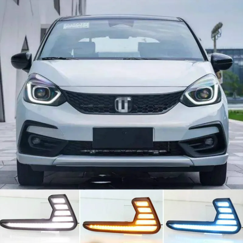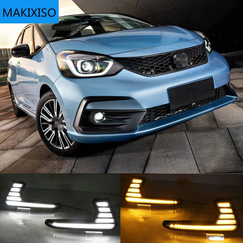 LED Daytime Running Lights for Honda Jazz fit 2020 2021 LED DRL fog lamp with turn signal function car styling