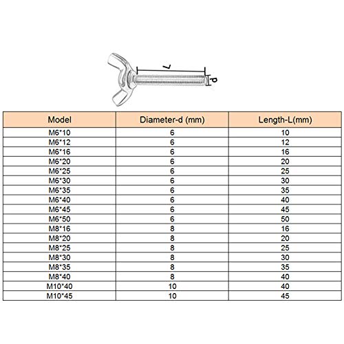 Daytwork Viti Ad Alette Viti A Farfalla Bulloni - Acciaio Inox 304 Viti Ad Alette Fissaggio Filettatura Intera Liscio Finitura Officina M6 M8 M10