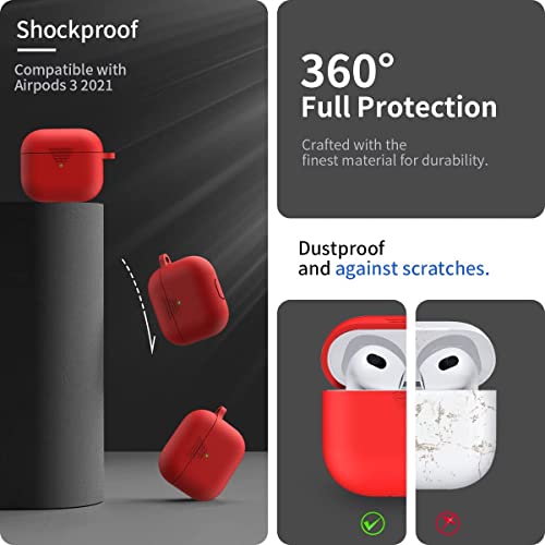 DAZUAN Custodia Protettiva in Silicone per AirPods 3 Generazioni, Set di Accessori per Apple AirPod 11 in 1, con Supporto per Cinturino dell'orologio / Ganci per Le Orecchie / Portachiavi (Rosso)