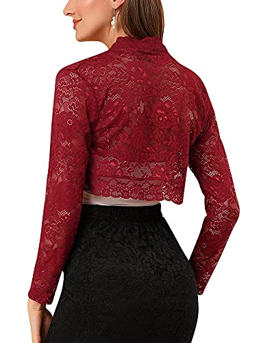 Dazzerake Cardigan Corto Elegante da Donna in Pizzo Floreale Trasparente Bolero Coprispalle con Maniche Lunghe Giacca all'Uncinetto Aperta sul Davanti (Rosso, L)