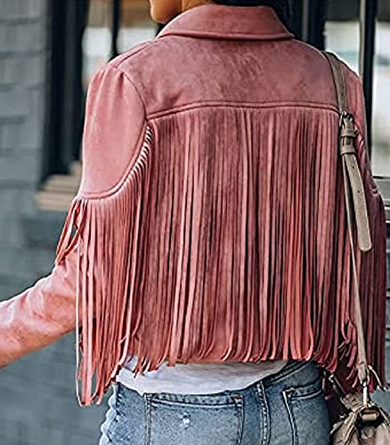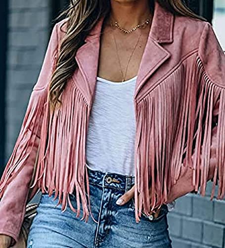 Dazzerake Giacca da Donna con Nappe Giacca Stile Vintage a Maniche Lunghe con Frange Giacca Corta da Motociclista Autunno Inverno Cappotto Aperto sul Davanti Degli anni '70 (Rosa, M)