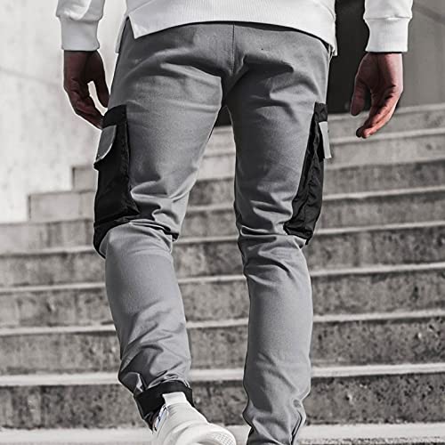 Dazzerake Pantaloni da Uomo a Blocchi di Colore Mid-Rise Cargo Combat Pantaloni Lunghi da Lavoro Multitasche (Grigio, XL)