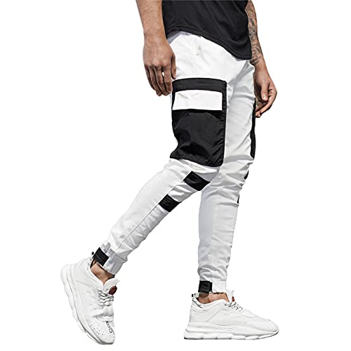 Dazzerake Pantaloni da Uomo a Blocchi di Colore Mid-Rise Cargo Combat Pantaloni Lunghi da Lavoro Multitasche (Bianco, M)