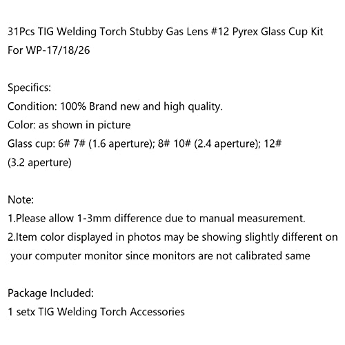 DAZZLEEX Accessori della torcia di saldatura di TIG, 31Pcs Stubby Gas Lens #12 Pyrex Glass Cup Kit per WP-17/18/26
