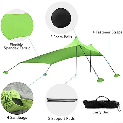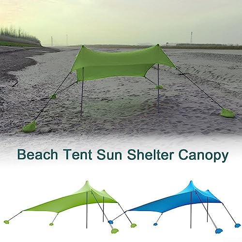 DAZZLEEX Tenda da spiaggia, 210 x 170 cm, tenda parasole con ancore a sacco di sabbia, tenda parasole per spiaggia, escursionismo, campeggio (verde)