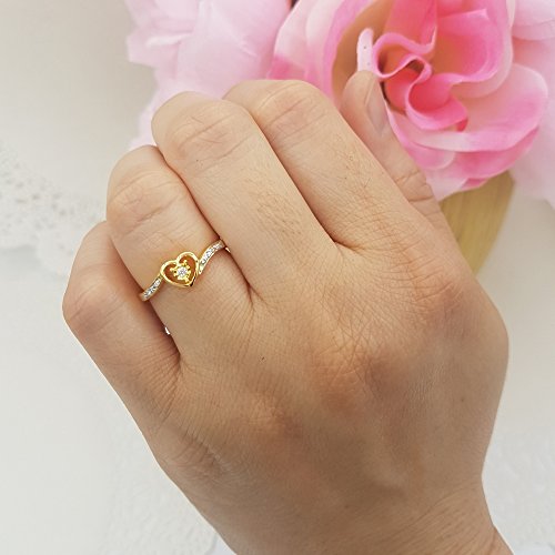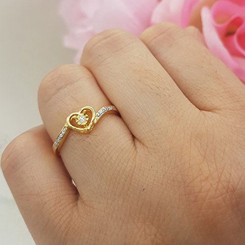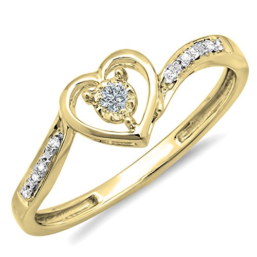 DazzlingRock Collection 0.10 carati in oro 10 K (Ctw) diamante rotondo da donna a forma di cuore promessa sposa anello di fidanzamento 1/10 ct, Oro giallo, 19,5, cod. K1500-Y-9
