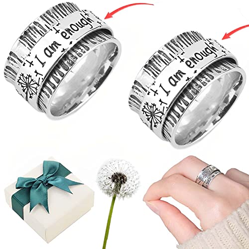 DBALL Anello Donna Dente di Leone, 2pcs Anello Donna Dente di Leone, con Scritta I Am Enough Anello con Scritta, Fiori alla Moda Anello di Decompressione Dell'anello di Svolta, Idea Regalo (8)
