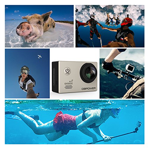 DBPOWER Original EX5000 - Action camera 14 MP Full HD, WiFi, impermeabile, con 2 batterie migliorate + accessori, argento