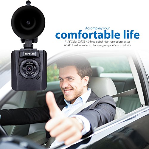 DBPOWER - Supporto Videocamera, Nero, Schermo Full HD 1920 x 1080,, 7 cm DVR Car, Dash Cam Obiettivo, con Super grande angolo di vista, 170 °, zoom 4 x accelerometro, SOS, rilevamento di movimenti, scheda SD 16 GB, 32 GB (32go) opzionale