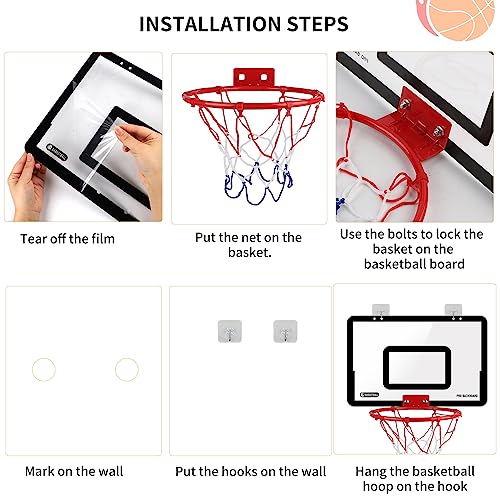 DBREAKS Mini Canestro Professionale da Basket, Mini Kit da basket per Camera Interno per Bambini, Nero Per il basket in PVC per montaggio a parete, con 3 palloni da basket (40*26cm)