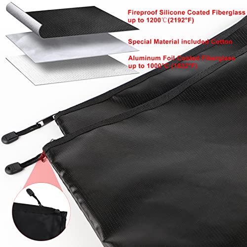 【Materiale pregiato】 Lo strato esterno della borsa portadocumenti ignifuga è costituito da un tessuto in fibra di vetro al silicone liquido modificato con bassa conduttività termica ed elevata resistenza al fuoco. Ciò consente al sacco di accoppiamento di resistere a 1000 ℃ (1832 °F).