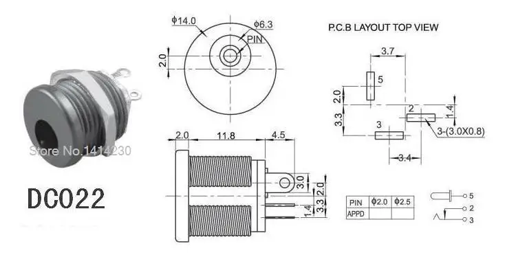 5PCS DC-022 5.5x2.1mm 5.5*2.1mm DC Power Jack DC Connector Panel Mounting DC022 5.5-2.1