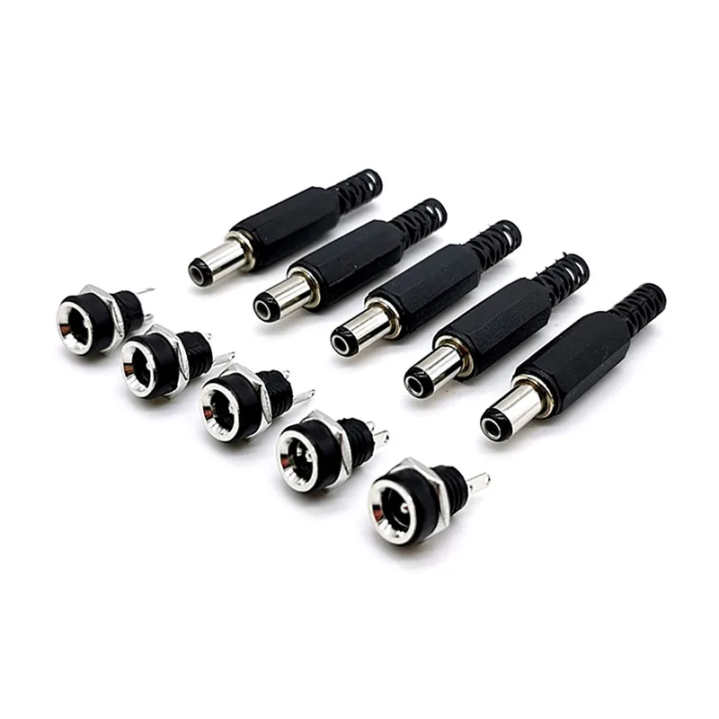 DC-022B 5.5X2.1mm DC Power Female Plug + Male Plug Jack Socket Adapter Connector DC Power Supply Panel Mount Connector DC022B