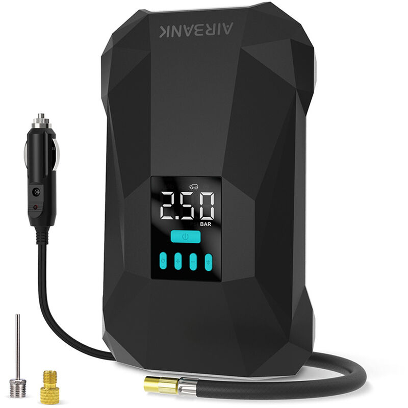 Questa pompa ad aria intelligente con molteplici funzioni soddisfa le tue diverse esigenze. Adatto per auto, biciclette, moto e palloni. Portatile per interni ed esterni. Caratteristiche: Il gonfiatore ha una pressione gonfiabile massima di 150PSI. Dotato di connettore da 12 V CC supporta l'alimentazione a 12 V CC, con il tubo dell'aria da 23,6 "puoi gonfiare più facilmente le tue attrezzature. È possibile scegliere 5 modalità di scena gonfiabili (Auto/Bici/Moto/Palla/Modalità personalizzata). Rilevamento della pressione intelligente e funzione di arresto, basta preimpostare la pressione di gonfiaggio corretta, premere per avviare e smetterà automaticamente di gonfiarsi una volta raggiunta la pressione preimpostata. Dotato di 2 ugelli, permette di raggiungere tutti i pneumatici dei vostri palloni, biciclette, moto e auto. Lo schermo LED visualizzerà la pressione attuale dei pneumatici, facile da monitorare la pressione. Luce LED luminosa integrata da utilizzare anche di notte.