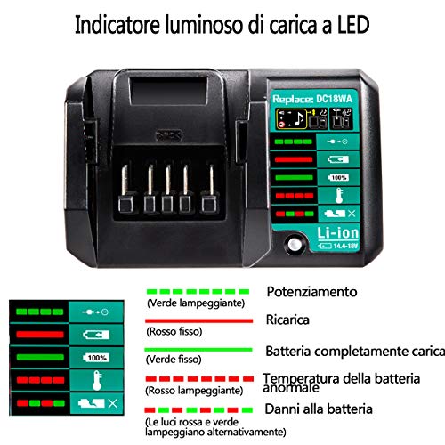 1.Modello di batteria compatibile: per MaKita BL1440G 196375-4 BL1413G BL1415G BL1411G BL1440G BL1813G BL1811G BL1830G;