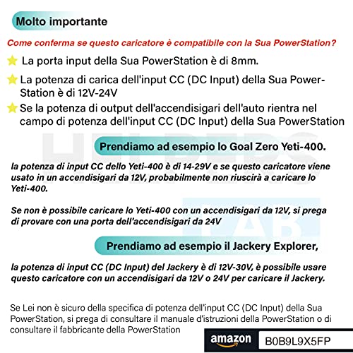 Il caricatore per auto ha un connettore da 8mm ed è perfettamente compatibile con il Jackery Portable Power Station Explorer 160 240 300 500 1000 240Wh 293Wh 167Wh 518Wh YHY-12005000 DS120060C8-W 56101600 32120000 Goal Zero Yeti 400