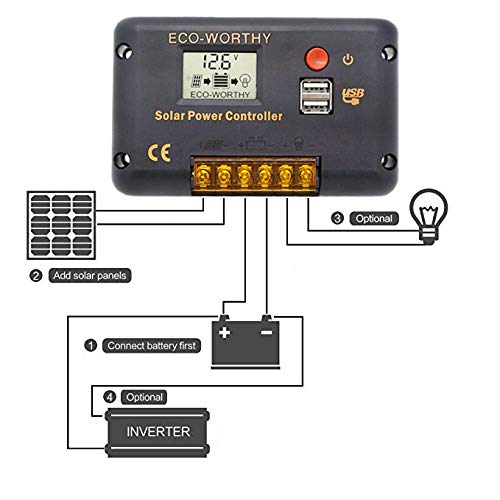 DCHOUSE 20 A Solar Charger Controller Solar Panel Battery Intelligent Regulator with USB Port Display 12 V/24 V