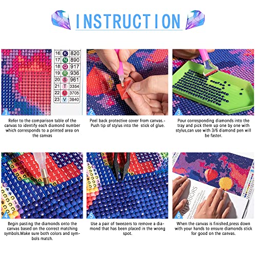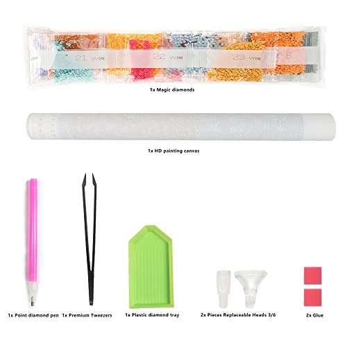 Matériau de haute qualité: il kit de peinture au diamant est composé d'une toile de peinture à l'huile claire de qualité supérieure, non toxique et hautement Transparente, imperméable, de bonne texture et difficile à plier. La pte adhésive environnementale termofusible a une forte viscosité, pas facile à tomber.Le canevas diamante kit complet possède 26 facettes pour rendre la peinture diamante 5d complet plus brillante, plus tridimensionnelle, lisse et délicate au toucher.