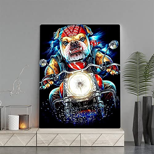 DCIDBEI 5D Diamond Painting Square Drill 40x50 cm Puzzle Diamond Quadrato Fai Da Te Cani Bulldog su Harley Moto Diamond Paint Moto per Adulti kit di Ricamo a Punto Croce per Adulti Puzzle Strass Cani