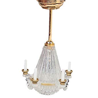 Dcolor 1:12 Casa delle bambole in miniatura cinque candele false lampadario trasparente LED d'Oro