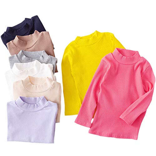 DCUTERQ Unisex del Bambino Capretti del Bambino di Base di Colore Solido Cotone Dolcevita Manica Lunga A Costine Knit T-Shirt Top Vestiti Verde 6 Anni