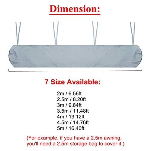 Facile e veloce da usare. È sufficiente posizionare la borsa sopra la tenda a scomparsa e legarla sul retro utilizzando i cordoncini di fissaggio inclusi. Progettato per adattarsi a qualsiasi tenda da sole, ma è perfetto per le tende manuali standard, che non hanno già la protezione esistente di una cassetta in alluminio.