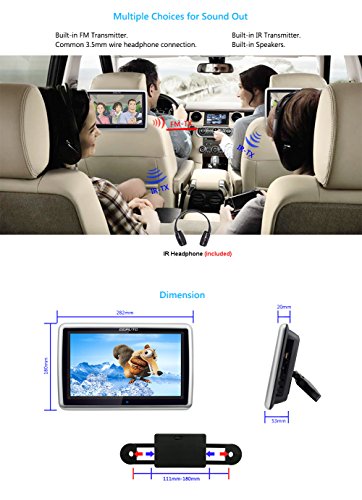 DDAUTO DD1019HTS Poggiatesta DVD 1080P Upgraded Capacitivo Touch Screen Lettore Multimediale Schermo LCD con Cuffia IR L'inserimento Drive Supporta Riproduzione di Sfondo CPRM DVD SD USB 10.1 Pollici Piano Black