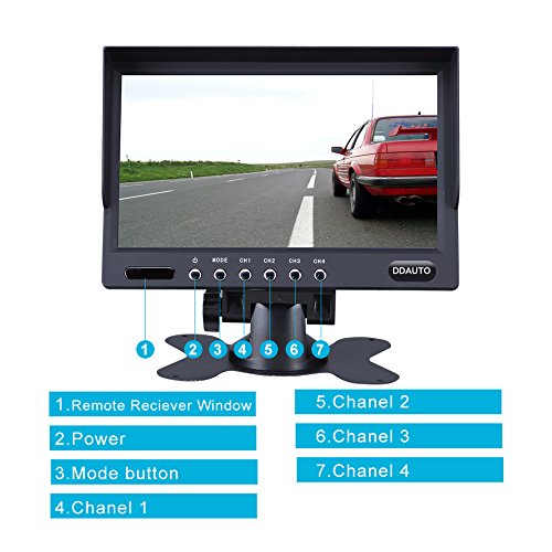 DDAUTO DD1407B backup auto fotocamera 17,8 cm split Quad monitor a 4 canali, ingresso video Full HD color immagine cavo comando e retromarcia Assist sistema di sicurezza per camion/Semirimorchio/RV rimorchio/Bus/trattore