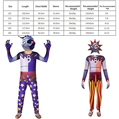 【Costume Sundrop e Moondrop】: i costumi per bambini includono una tuta e una maschera per il viso, un'esperienza di grande valore per i giochi di ruolo per le vacanze, tuo figlio può mettere il ruolo di un personaggio in questa scena di gioco con atmosfera e atmosfera inquietante e imitare le sue azioni e Caratteristiche per giocare con questo vestito da gioco di ruolo.
