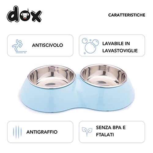 DDOXX Ciotole Doppie per Cani, Antiscivolo | Tanti Colori e Misure | Per Cani Piccoli Medi e Grandi | Ciotola in Melammina | Gatti Cuccioli Ciotolina Cane Gatto Cucciolo | Blu, 2 x 160 ml