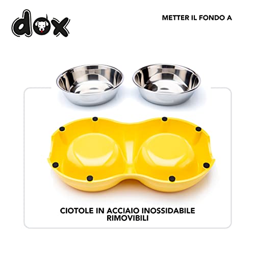 DDOXX Ciotole Doppie per Cani, Antiscivolo | Tanti Colori e Misure | Per Cani Piccoli Medi e Grandi | Ciotola in Melammina | Gatti Cuccioli Ciotolina Cane Gatto Cucciolo | Giallo, 2 x 350 ml