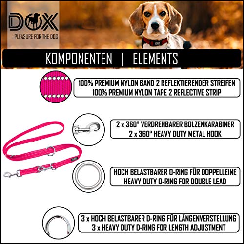 DDOXX Guinzaglio per Cani Nylon Riflettente, Regolabile con 3 Misure, 2 m | Tanti Colori e Taglie | Guinzaglio Doppio Cane Gatto Cucciolo Taglia Piccola Media Grande Piccoli Medi Grandi | S, Rosa Rosa