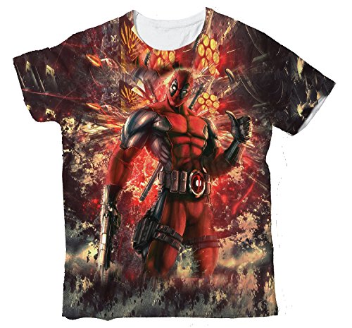 Deadpool Marvel-Maglietta con stampa in rosso e nero