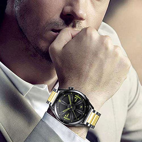 DEALELE Compatible con Samsung Galaxy Watch 46mm / Galaxy 3 45mm / Huawei Watch 4/4 Pro / 3/3 Pro / GT3 46mm / GT2 46mm, Cinturino di Ricambio in Metallo Acciaio Inossidabile 22mm, Nero/Oro