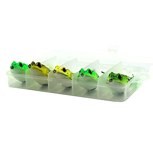 Dealit 6 Pezzi Fishing Lure Tubo in Plastica Morbida della Rana Ancorette Topwater Ray Rane Esche Artificiali con Tackle Box