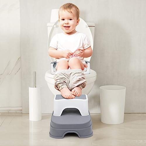 [Adatto Alla Maggior Parte Delle Toilette] Questo riduttore wc per bambini con maniglia si adatta saldamente alla maggior parte dei WC standard (ma non ai WC quadrati, allungati e intelligenti). Progettato con una combinazione di colori grigio e bianco per bambini e bambine.