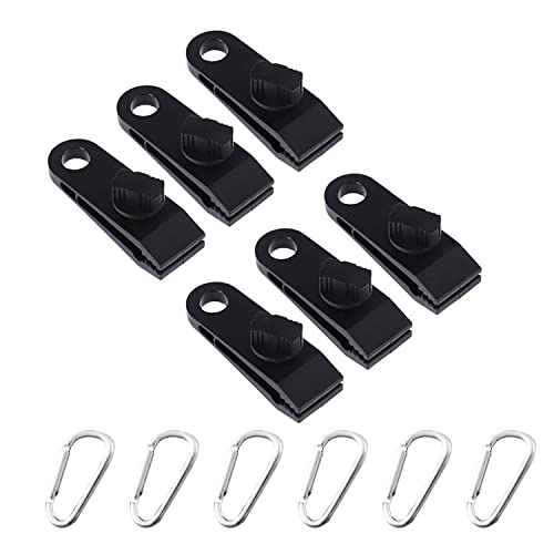 DEANKEJI 6 Pezzi Clip per Teloni, Nero Colore Antivento Morsetto per Tenda, con Moschettone, Clip per Teloni di Coccodrillo può Essere Utilizzato per Tende, Barche, Teloni
